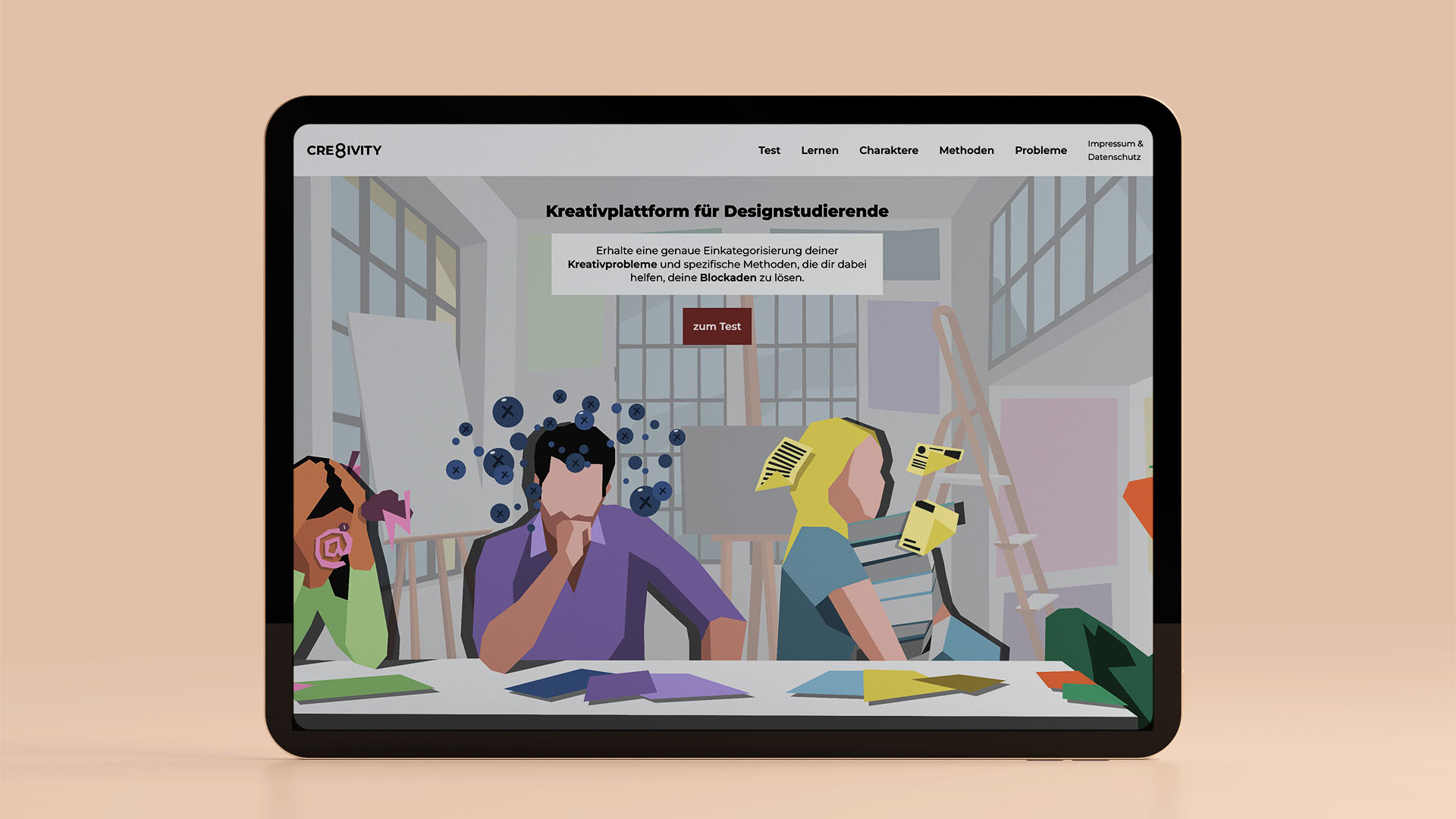 Diese Webseite ist eine Kreativplattform für Designstudierende. Erhalte eine genaue Einkategorisierung deiner Kreativprobleme und spezifische Methoden, die dir dabei helfen, deine Blockaden zu lösen.