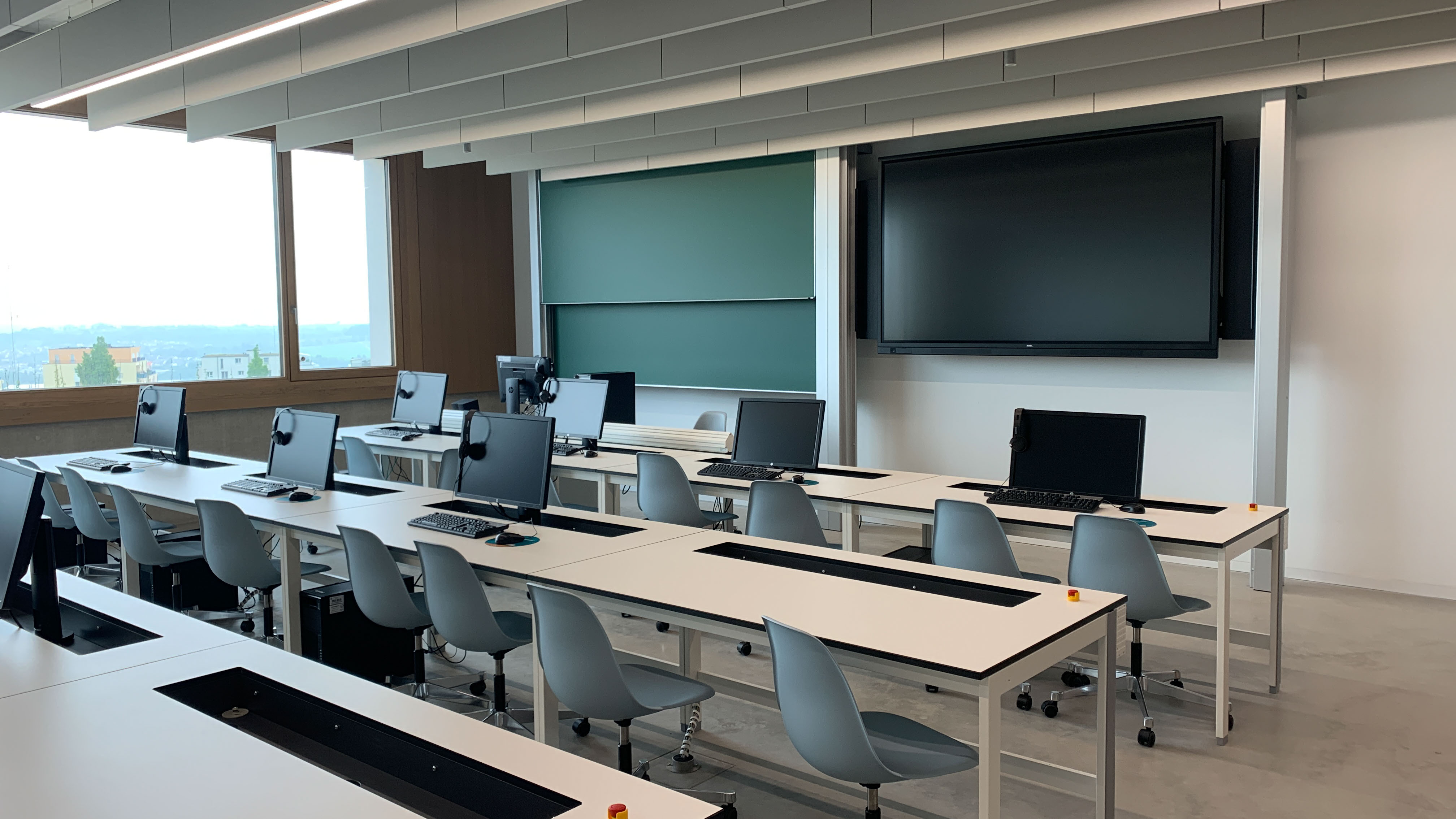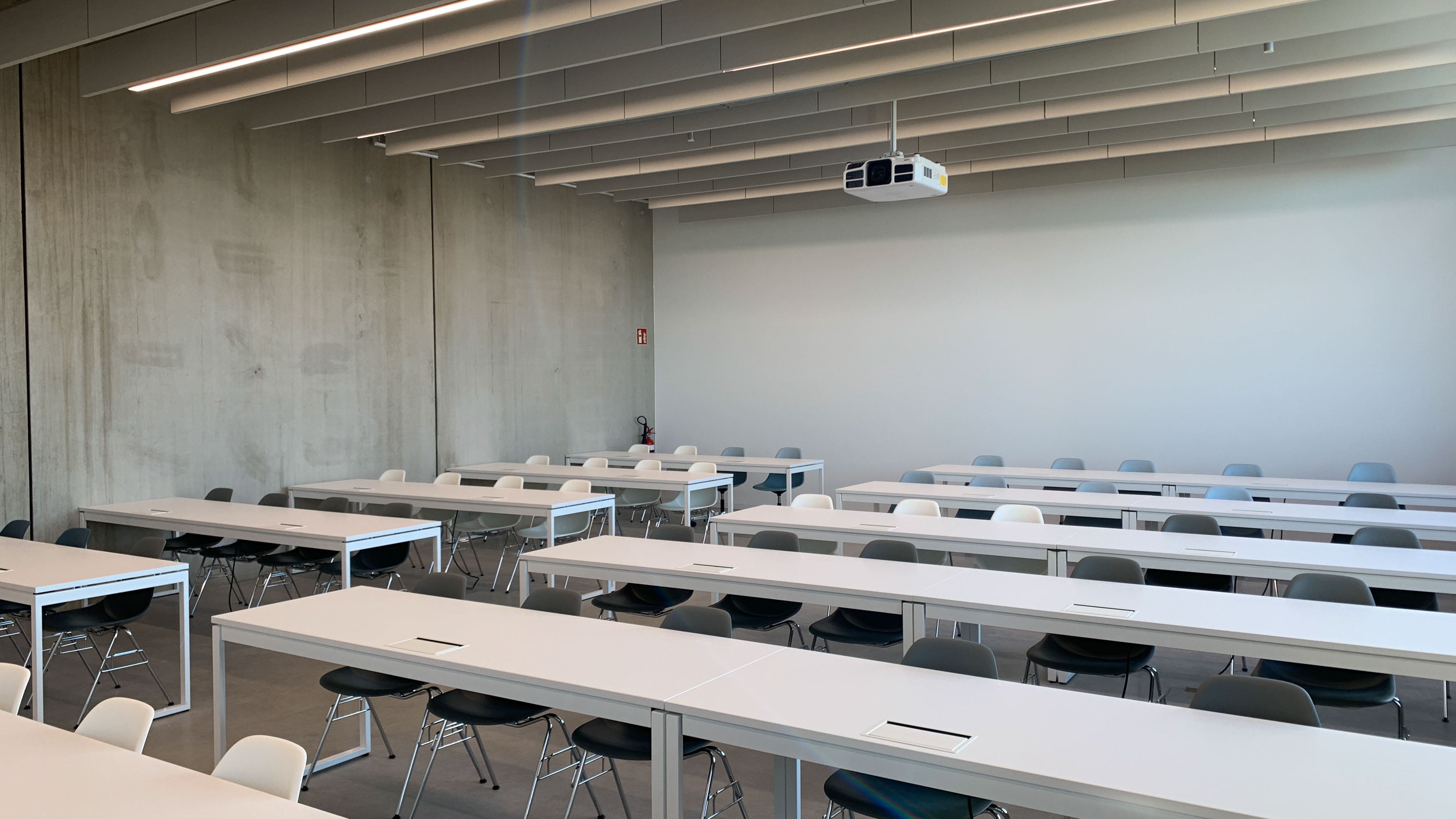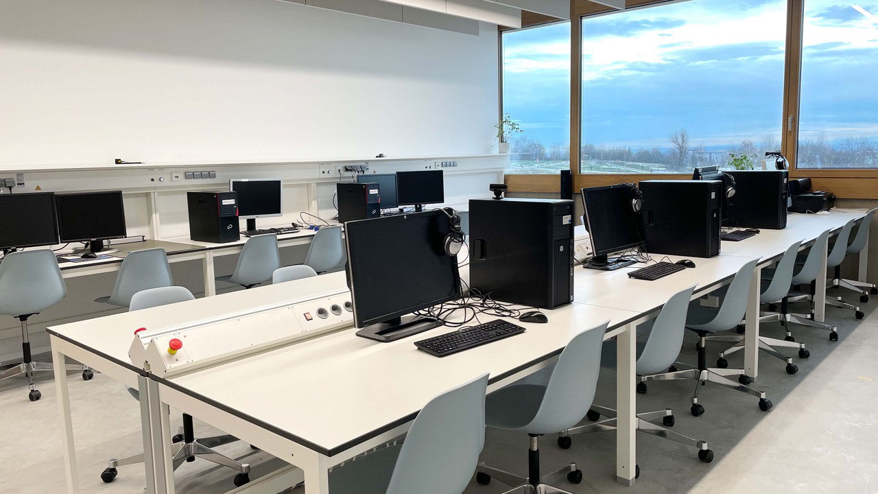 Hier finden so gut wie alle klassischen Vorlesungen statt, die keine spezielle Laborausstattung voraussetzen. Der Seminarraum verfügt über einen 4K Projektor mit einer Projektionsfläche von über 4m.